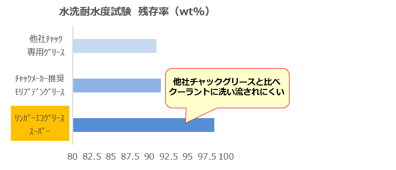 汎用グリースに比べ、飛散や洗い流しの影響が少ないため、通常は数時間の加工で低下するチャックの把握力を維持し、加工精度が安定します。